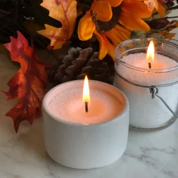 Vosk na rostlinné bázi: Vosk je bezbarvý a bez zápachu, hoří čistě a bez sazí. Je vyroben z rostlinných olejů, jako je sójový, kokosový a řepkový olej.